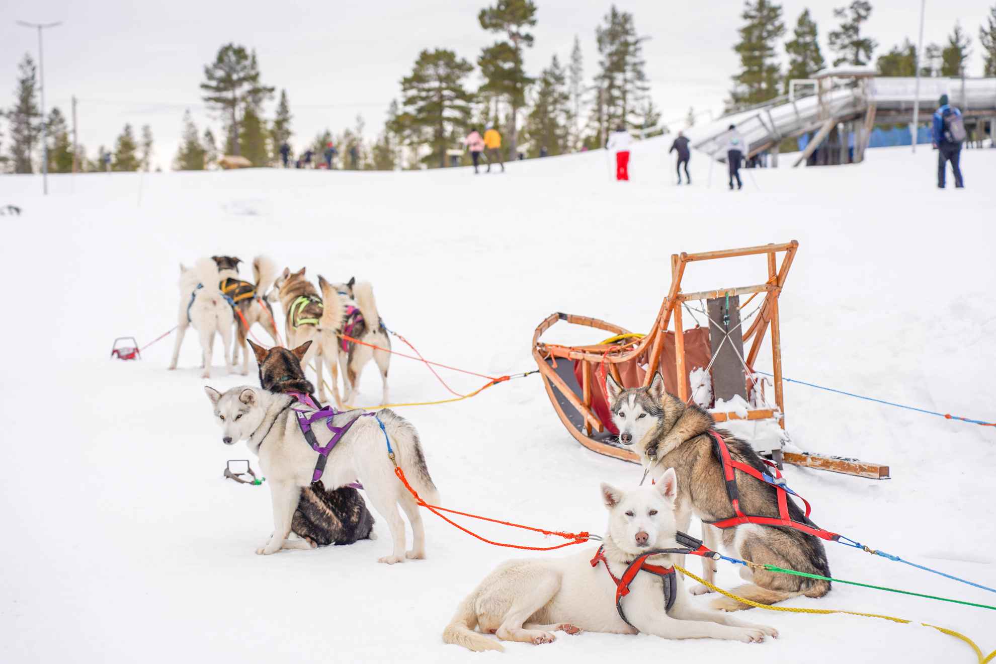 Ein Hundeschlitten wird von einem Musher geführt, einer Person, die hinter dem Schlitten steht und die Hunde mit verschiedenen Techniken und Kommandos führt. Bei einigen Touren kannst du nach einer Einführung selbst der Musher sein. Dann musst du auch arbeiten und den Hunden helfen. Dieses Abenteuer ist Teamarbeit! Ein Hundeteam besteht aus 2 bis 18 Hunden, meist Alaska- oder Sibirische Huskies. Es gibt aber auch andere Hunderassen, die sich für das Hundeschlittenfahren eignen.
